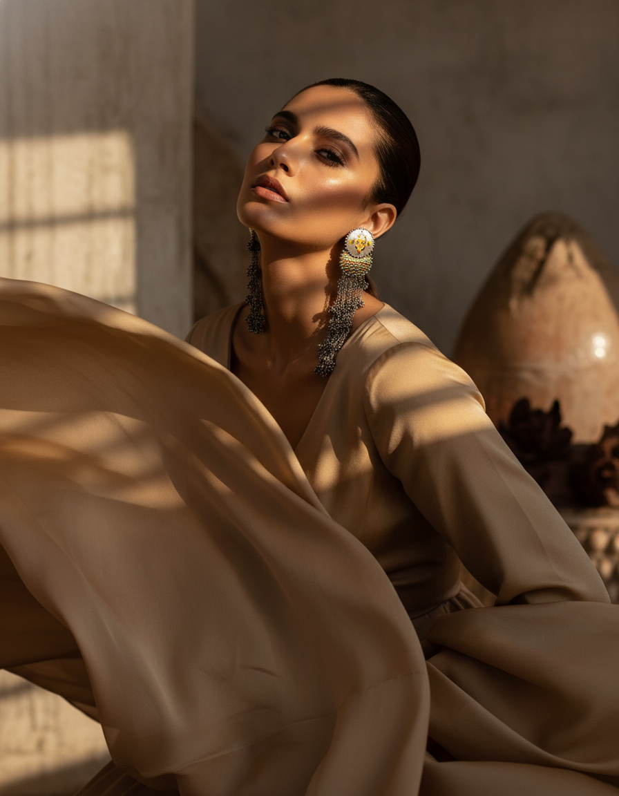 Pair with structured shirts, black sarees, or offbeat fusion sets. Ideal for creative workspaces, exhibitions, or evening events where your jewelry should whisper art, not shout glamour.